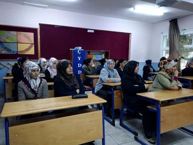 25 öğrenci velisinin katıldığı toplantıda bir konuşma yapan ÇYDD Çeşme Şubesi Başkanı Hamide Bal, çocuk istismarının giderek yoğunlaştığına dikkat çekerek, anne babaların çocuklarını uyarmalarını, kendilerini dikkatle izlemelerini, herhangi bir istismar durumunda yapılması gerekenleri anlattı.