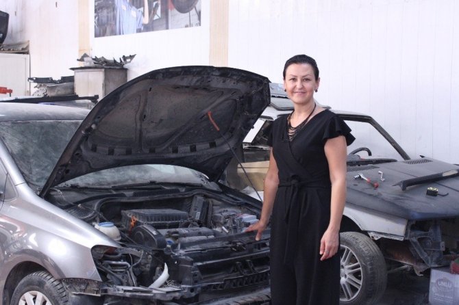 İzmirli Nergiz Yavaş (41), çocukluk hayalini gerçekleştirerek kendi otomobil tamir atölyesini açtı.