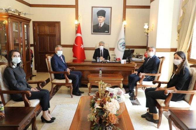 Dünya Çevre Günü münasebetiyle Çevre ve Şehircilik İl Müdürü Selçuk Aydın ve beraberindeki şube müdürleri Vali Mehmet Makas'ı makamında ziyaret ettiler.