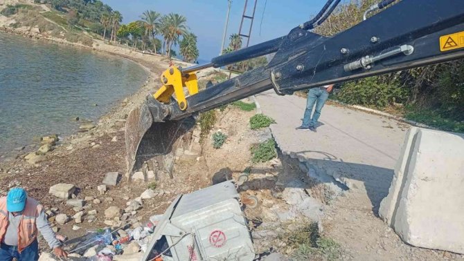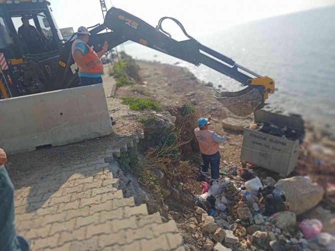 Ekipler son olarak Yılancı Burnu Mevkii'nde duyarsız vatandaşların oluşturduğu çevre kirliliğine müdahale etti. Bu kapsamda, kasıtlı bir şekilde devrilen konteynerlerden etrafa saçılan çöpler bir bir toplandı. Atıkların oluşturduğu kirlilik ise çevreye zarar vermeyen özel ilaçlarla yıkandı. Denize karışan atıklar ise iş makineleri aracılığıyla çıkartılarak Temizlik İşleri Müdürlüğü'ne ait çöp kamyonlarına yüklendi.