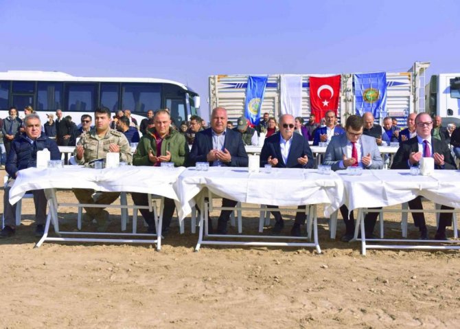 Şanlıurfa'nın Ceylanpınar ilçesinde bin 475 dekarlık alanda 23 bin fidan dualarla toprakla buluşturuldu.
