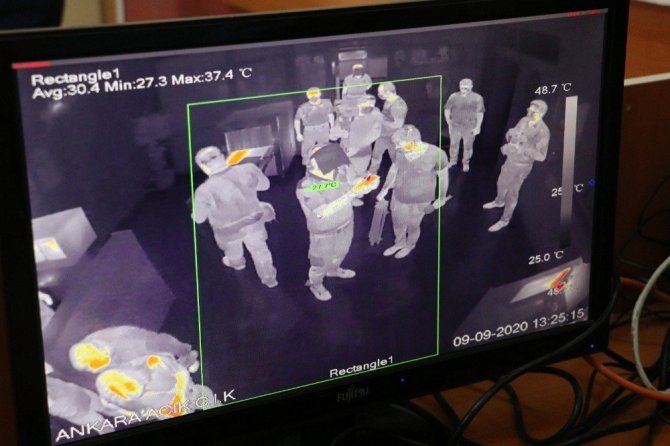 Ceza infaz kurumunun girişinde ısıya duyarlı termal kameraların bulunduğunu ifade eden Yılmaz, "Ateş ölçer ile ortaya çıkamayan bazı vücut ısısının artışlarının da buradan takibi yapılmakta. Ancak yine kuruma girerken ateş ölçer vasıtasıyla görevlilerimiz gelen herkesin ateşlerini tekrar kontrol ediyorlar. Buradaki koşulların steril olması için tüm çaba ve gayreti gösteriyorlar" dedi.