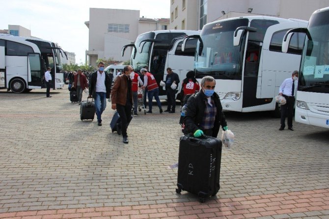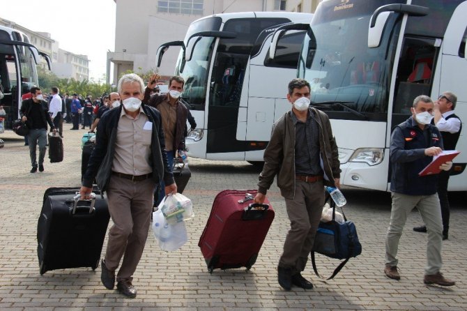 Cezayir’den getirilerek Aydın’daki iki ayrı yurtta karantinaya alınan 450 Türk işçi, memleketlerine protokol tarafından uğurlandı.