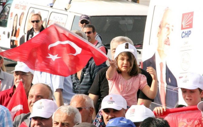 CHP Cumhurbaşkanı adayı İnce, Kastamonu mitingine şapka ile çıktığını ifade ederek, “Arkadaşın 35. günde kimyası bozuldu. Her gün bizler ve onlar diyordu. Bugün Nevşehir’de gelin 81 milyon helalleşelim demiş. Arkadaşa bir şey oldu. 16 senedir milleti böl, biz ve onlar, sürekli kavga et 16 sene sonra aklın başına gelmiş. Bu da kardır. Merak etmeyin bu 15 günde ben onu daha çok güzel noktalara çekeceğim. Kastamonu’da mitinge çıkarken şapkasız çıkmak olmazdı. Yolda engelli kardeşlerimiz bunu hediye ettiler. Geçtiğimiz günlerde Erdoğan diyor ki ‘Şapka ile çıkıyor’ diyor. ‘Şapka nedir ki 3-5 liraya alırsın’ diyor. Şapkayı alırsın da onun içindeki köylünün terini ne yapacaksın. Yine 16 sene sonra dedim ki ‘Başbakanlık, Cumhurbaşkanlığı yaptı.’ Acaba dedim seçimin son günlerinde ne vaatte bulunacak. Ben diyorum ki endüstri 4.0, uzay madenciliği, gençleri geleceğe hazırlayalım, tarıma dayalı sanayi, üretim fabrika, çocuklara iş. Geçen gün çıktı kıraathane açacakmış. Dedim ki bunun yanında kesin FETÖ’cüler var. Projeye bak 16 yılın sonunda kıraathaneler açacakmış. Çay, kek bedavaymış. Bizi keklemeye çalışıyor. 16 yıl sonundaki projeye bak. Kastamonu’dan 81 milyona sesleniyorum. Bedava kek yemek isteyenler oyunu Erdoğan’a, fabrikada iş isteyenler oyunu bana versin. Bunu nasıl söylüyor anlamıyorum. Acaba diyorum çok yoruldu. Alsın şunu Muharrem ben kurtulayım mı demek istiyor. Ben fabrika diyorum, üretim diyorum, kıraathane diyor. ‘Gelsinler orada kek bedava’ diyor. Ey atanamayan öğretmenler ben sizi atamayacağım, ey 1.5 milyon imam hatipli sana iş bulmayacağım, ey iktisat işletme fakültesi mezunları siz de boştasınız. Size bir tabağa biraz kek, bir de çay vereceğim, orada kekle çayı yiyin. Bir şey söyleyeceğim. İnternet de yok. Sosyal medya yok, Wikipedia yok. Ona laf söylemeyeceksin. Hz. Peygamber 622’de hicret etti, 632’de vefat etti. Vefatından önce veda hutbesi vardır. 100 bin kişi katılmıştır o hutbeye. O hutbede Hz. Peygamberimiz helalleşmek istemiştir. Peygamber bile bunu yapıyor. Biz beyefendiyi eleştiremeyeceğiz. Eleştirdiğin zaman sabahın 5’inde polisler gelecek. Bu Türkiye kalkınamaz, üretemez, zenginleşemez. Önce mahkemelerine güven duyulan, yargısı tarafsız ve bağımsız olan bir Türkiye lazım, demokrat bir Türkiye lazım” şeklinde konuştu.