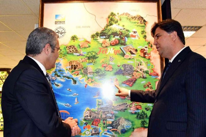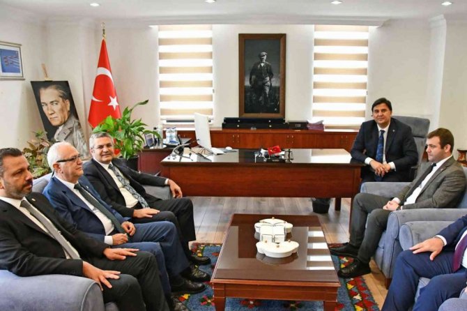 Cumhuriyet Halk Partisi (CHP) Genel Başkan Yardımcısı Oğuz Kaan Salıcı ve Parti Meclis Üyesi Hasan Efe Uyar, Fethiye Belediye Başkanı Alim Karaca'ya ziyarette bulundu.