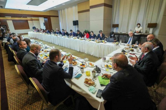 CHP Genel Başkanı Kemal Kılıçdaroğlu, basın mensupları ile bir araya gelerek soruları cevapladı. 2022 yılında seçim mitinglerinden daha çok buluşmalarla helalleşme sürecinin başlayacağını söyleyen Kemal Kılıçdaroğlu, iktidara geldikleri zaman atamaları liyakat esaslı yapacaklarına dikkat çekti. İstanbul Büyükşehir Belediyesine terörist çalışan alındığı iddialarına da cevap veren Kılıçdaroğlu, o kişilerin işe girerken savcılıktan temiz kağıdı aldığını ve eğer suçlu birisi varsa bunun "temiz" kağıdı veren Adalet Bakanlığı olduğunu söyledi.