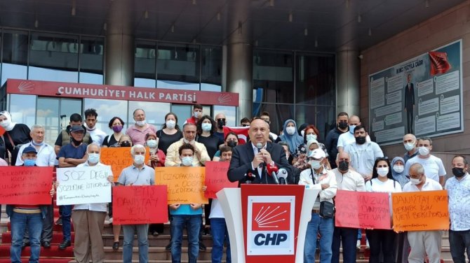 CHP Başkanvekili Özkoç, CHP Genel Merkez binasının önünde İstanbul Güngören-Tozkoparan kentsel dönüşüm mağdurlarıyla birlikle kentsel dönüşüm hakkında konuştu.