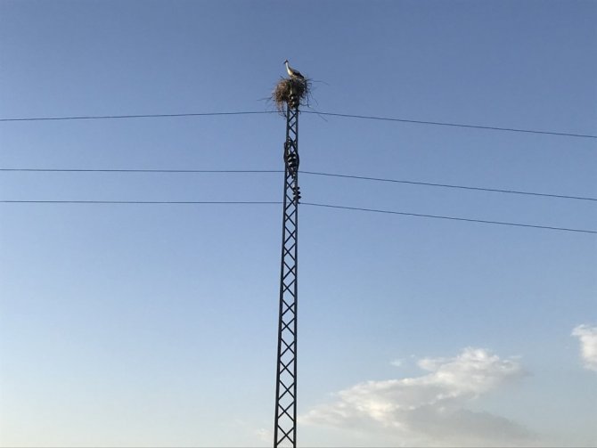Iğdır'ın Karakoyunlu ilçesinde elektrik direkleri üzerine yuva yapan leylekler, tarlada bulunan zararlı böcekleri yiyerek çiftçiye yardım ediyor.