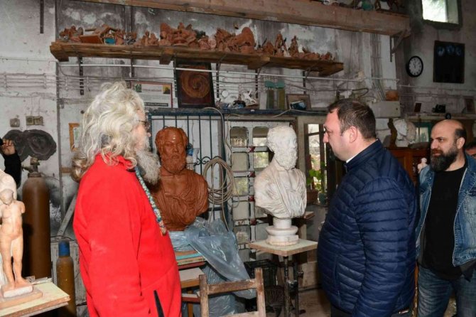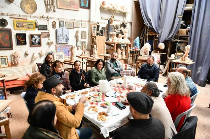 Kültür sanat alanındaki çalışmaların titizlikle sürdürüldüğü Çiğli'de, Başkan Utku Gümrükçü Ekin Erman Atölyesi'ni ziyaret ederek heykeltıraş Ekin Erman, seramik sanatçıları, mimar ve ressamlardan oluşan sanat üreticileri ile kahvaltı yaptı. Atölyenin ihtiyaçları ve devam eden çalışmaları hakkında bilgi alan Başkan Gümrükçü, Kaklıç Sanat Köyü Projesinin 2022 yılı hedefleriyle ilgili değerlendirmelerde bulundu.
