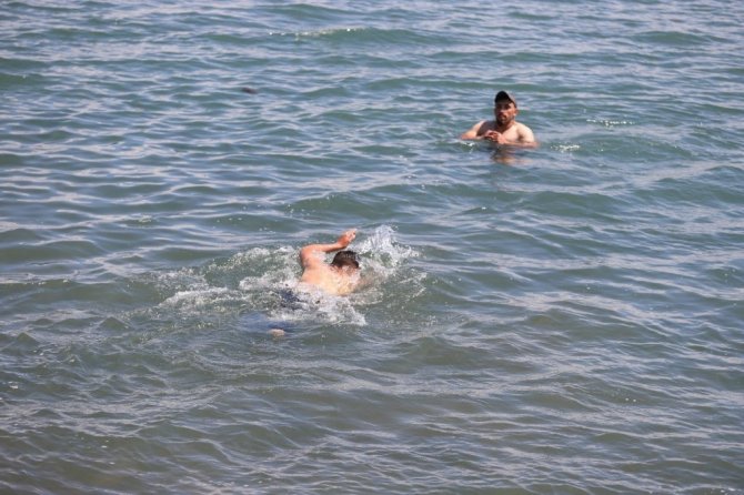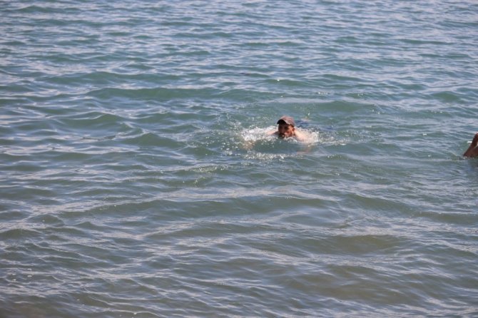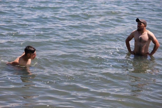 Baran Burukçu ise sıcaklardan dolayı bunaldıklarını söyleyerek, "Şu anda Çıldır Gölü'nün tadını çıkartıyoruz" dedi.