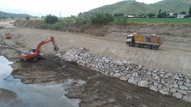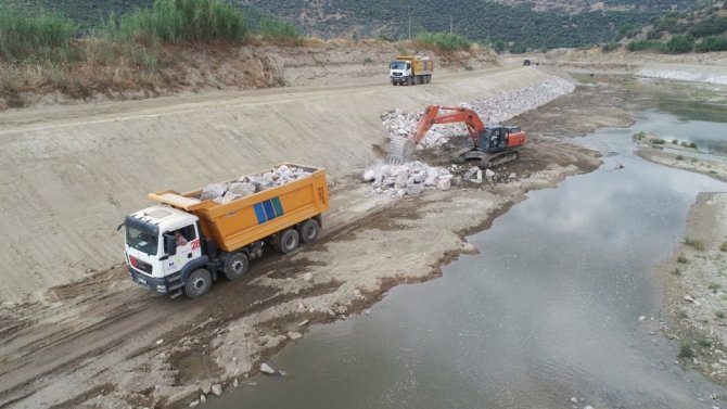 Tarım arazilerini taşkınlardan korumak amacıyla Çine Çayı'nda sürdürülen ıslah çalışmaları devam ediyor.