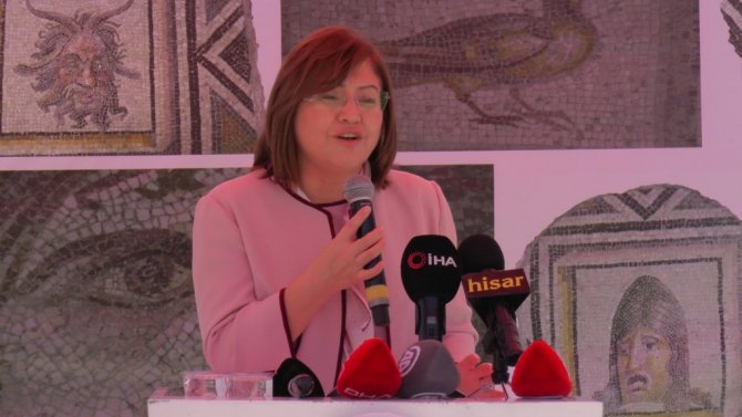 Düzenlenen törende açıklamalarda bulunan Gaziantep Büyükşehir Belediye Başkanı Fatma Şahin, "Bugün hepimiz bir tarihe tanıklık ediyoruz. Yer mozaiği olan bu 12 parçanın, Çingene Kızı'nın ailesinin parçaları geçtiğimiz yıllarda Kültür Bakanımızın, Dışişleri Bakanımızın, Sayın Cumhurbaşkanımızın talimatıyla ailesine kavuştu. Bu eserleri ülkemize tekrar kazandırırken bir söz vermiştik. Şimdi bu sözü tutuyoruz. Bugün bu eserlerin arkada gördüğünüz replikalarını Fırat Nehri'nin taşlarından mozaik ustalarımızla yaparak tamamladık. Orijinallerine uygun şekilde bu eserler yaklaşık iki yıldır yapıldı ve tamamlandı. Şimdi orijinalini aratmayacak şekilde bunları verdiğimiz söz üzere Amerika'ya Bowling Green State Üniversitesi'ne gönderiyoruz. Bu eserlerin yolları açık olsun" dedi.