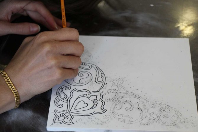 Kızıltepe'de açtıkları Aile Destek Merkezinde verdikleri 2 yıllık eğitim sürecinde 15'e yakın usta öğretici yetiştirdiklerini belirten çini ve sanat tarihi uzmanı Sultan Çeçen, "Usta öğreticilerle yapılan eserler Türkiye'de oldukça ses getirecek çalışmalara yer verildi. Bu çalışmalardan Kızıltepe'nin değerler haritası, robotlar serisi ve Mardin'in yöresel taşa işlenmiş motiflerinin çini sanatına aktarılması ve Türkiye'de hatta dünyada da ilk diyebileceğimiz altın, gümüş ve telkari ile çini sanatını birleştirerek takılar üretildi. Bu takılan üretirken özel tasarımlar yapılmıştır" dedi.
