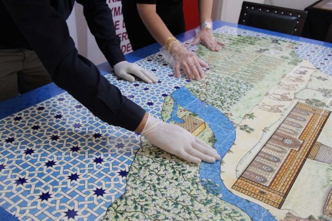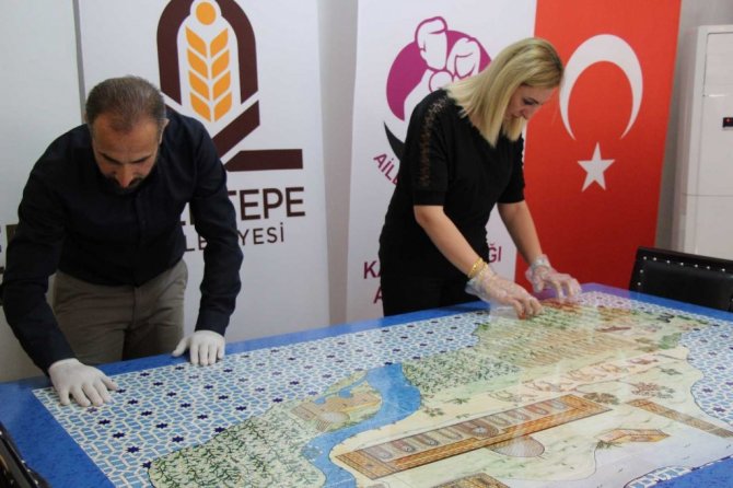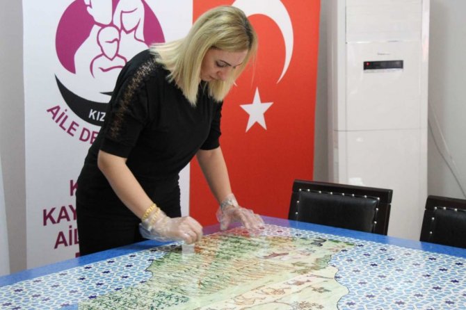 Mardin'in Kızıltepe İlçe Aile Destek Merkezinde 15 kadın usta öğretici çini ve telkari sanatını birleştirdi. Kızıltepe'nin değer haritası çini ile haritaya aktarılırken ortaya birbirinden güzel eserler çıktı.