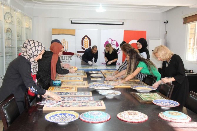 Mardin'in Kızıltepe İlçe Aile Destek Merkezinde 15 kadın usta öğretici çini ve telkari sanatını birleştirdi.