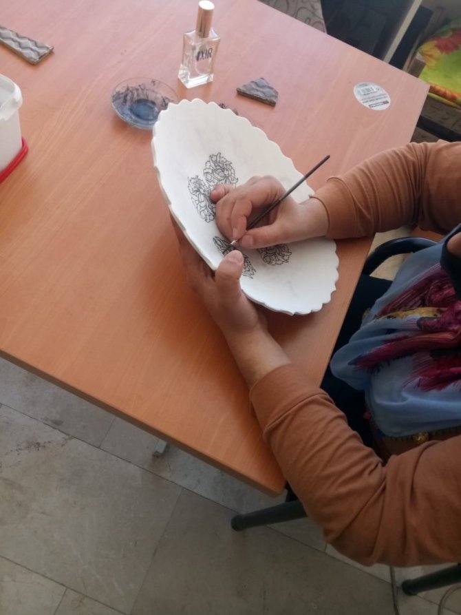 Kütahya'nın Çavdarhisar ilçesinde Halk Eğitim Merkezi Müdürlüğü ve İşkur İl Müdürlüğü işbirliği ile açılan "Çini işlemeciliği" kursunun aile ekonomisine katkı sağladığı bildirildi.