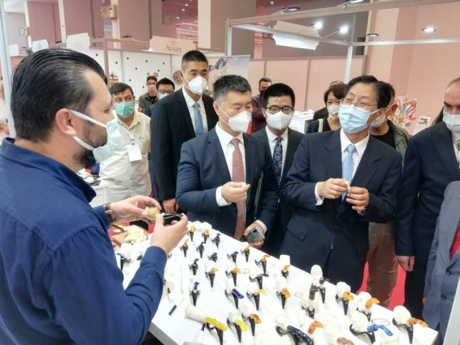 Türkiye ile Çin arasındaki diplomatik ilişkilerin 50'nci yılında düzenlenen Türkiye-Çin Kültür ve İş Geliştirme Forumu fuarında, Eskişehirli ustalar Çin Ankara büyükelçiye lületaşı işletti.
