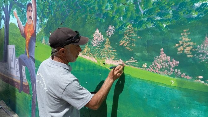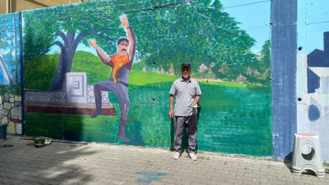 Kütahya'nın Gediz ilçesinde yaşayan Halil Avcı, resim yeteneği ve bilgisiyle şehre değer katıyor. Gediz Belediyesi Fen İşleri Müdürlüğü'nde görev yapan 55 yaşındaki Avcı, duvar ve trafolara çizdiği yağlı boya resimlerle ilçeyi güzelleştiriyor.