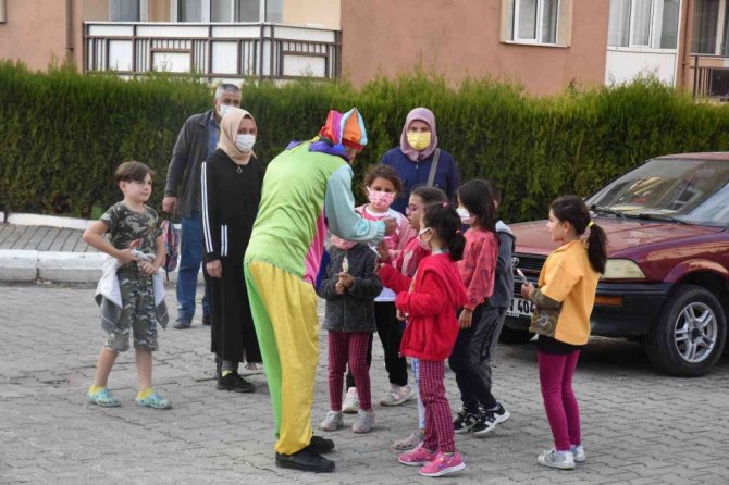 Çizgi film karakteri kostümleri giyip çocukların bayramını kutladılar