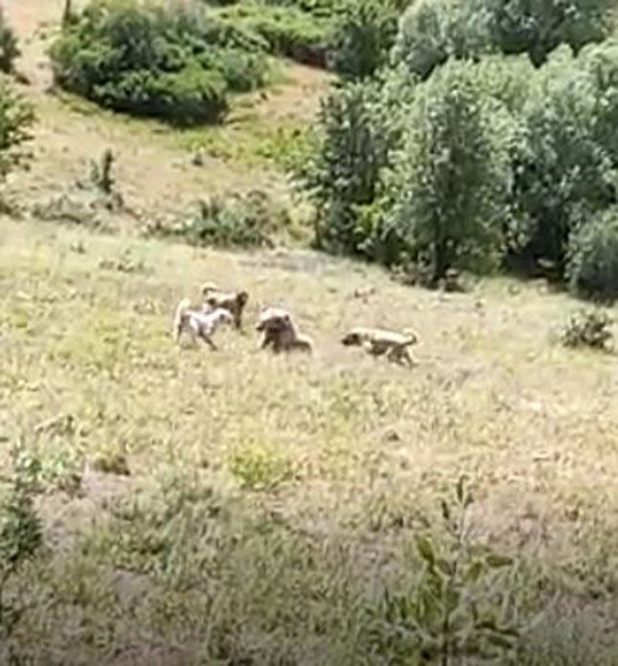 Tunceli'nin Pülümür ilçesinde çoban köpekleri bir boz ayıya saldırarak yaraladı. Köpeklerin ayıya saldırdığı anlar, vatandaşlar tarafından cep telefonu kamerasıyla görüntülendi.
