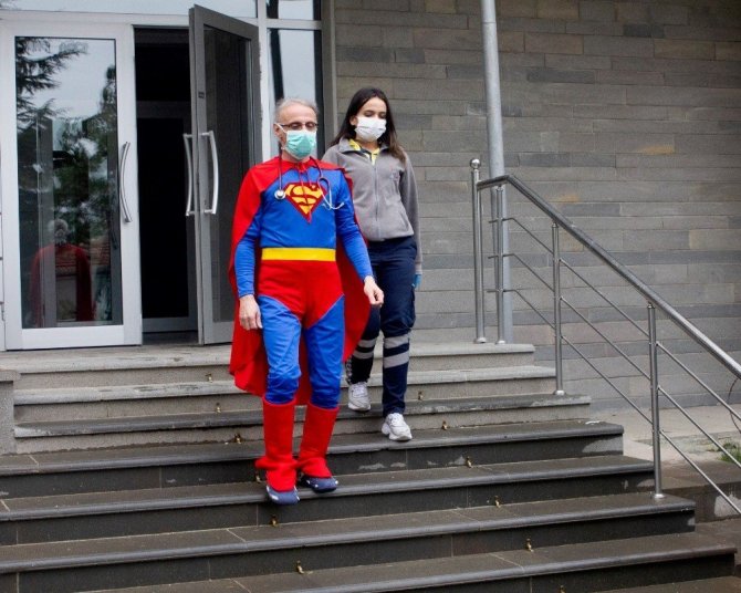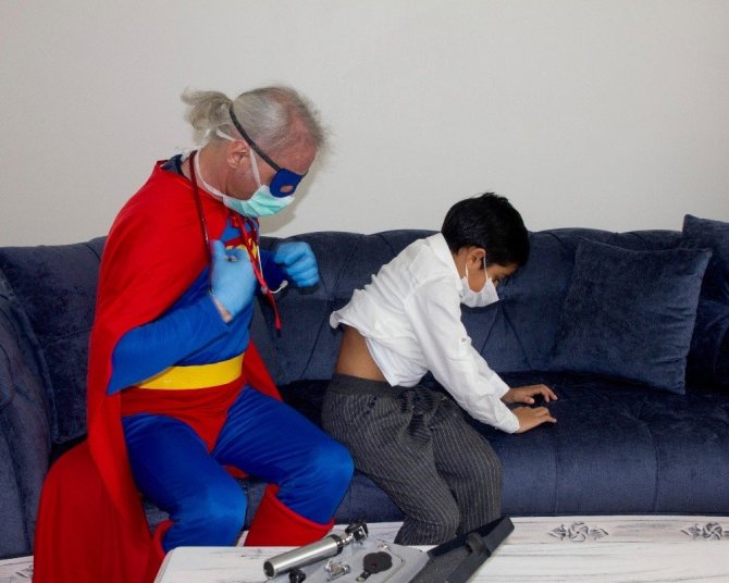 Anne Zeynep Yılmaz ise ‘Oğlum birkaç gündür soğuk algınlığı ve kırgınlık şikayeti vardı. Korona nedeniyle dışarı çıkamadığımız için evde sağlık hizmeti hattını aradık. Doktor talep ettik. Kapıyı açtığımızda karşımızda Süpermen kıyafetli doktor görünce önce büyük şaşkınlık yaşadık. Oğlumun en sevdiği kahramanlardan birinin kıyafeti ile gelen doktor oğluma hem şifa hem 23 Nisan hediyesi oldu. Emeği geçenlere teşekkür ediyorum” dedi.