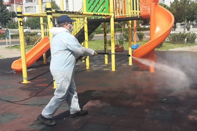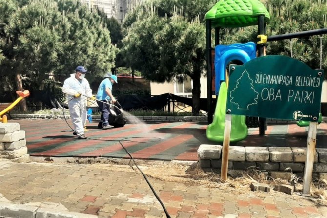 Korona virüsü salgını ile mücadele kapsamında yürüttüğü çalışmaları taviz vermeden sürdüren Süleymanpaşa Belediyesi, salgın tedbirlerinin hafifletildiği 17 Mayıs tarihinden bu yana özellikle çocuk parkları ve kamusal alanlarda dezenfeksiyon çalışmalarını hızlandırdı.