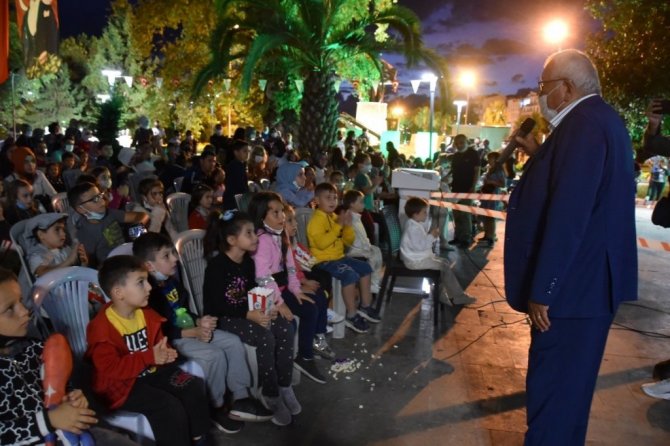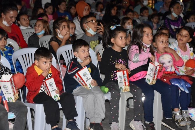 Zonguldak'ın Ereğli İlçe Belediyesi'nin çocuklar için düzenlediği açık hava film etkinliği büyük ilgi gördü.