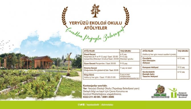 Kontenjanların sınırlı olduğu atölyeler hakkında detaylı bilgi ve kayıt için 0 (222) 211 40 00 / 3081-3085 numaralı telefonlardan, Tepebaşı Belediyesi Çevre Koruma ve Kontrol Müdürlüğü yetkililerine ulaşılabiliyor.