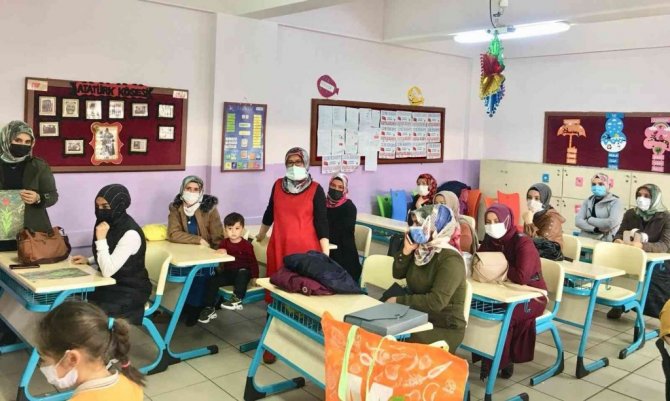 Samsun Bafra Cumhuriyet İlkokulunda sınıf öğretmeni Şerife Durmaz tarafından düzenlenen etkinlikte "ebru sanatı" veli ve çocukların ilgi odağı oldu.
