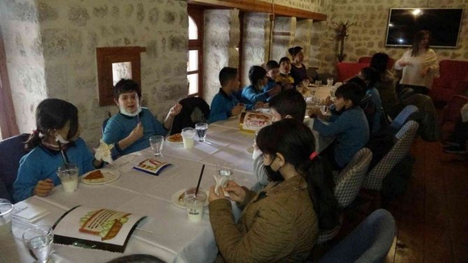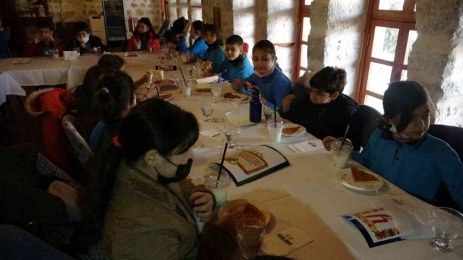 Antakya ilçesinde Turunçlu Şehit Hakan 3 Yıldız İlk ve Ortaokulu 4. sınıf öğrencileri Yerli Malı Haftasında Unesco Hatay Gastronomi Evi'ni ziyaret ederek katıklı ekmek atölyesine hünerlerini sergiledi.