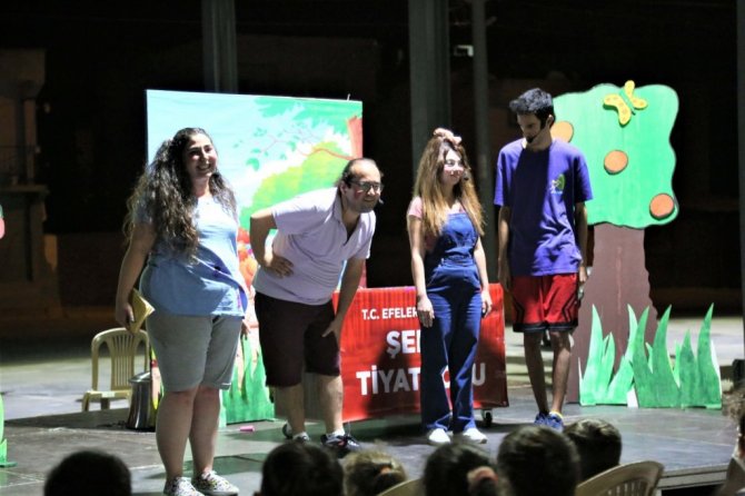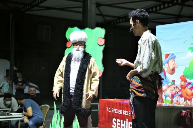 Efeler Belediyesi Şehir Tiyatrosu oyuncuları tarafından sahnelenen "Nasreddin Hoca ve Çocuklar" isimli müzikli çocuk oyunu, Ovaeymir Mahallesi'nde izleyicilerle buluştu. Serkan Fırtına'nın yazıp yönettiği oyunu çocukları ile beraber ebeveynler de büyük bir beğeniyle izledi. İlginin büyük olduğu oyunda, minik seyirciler doyasıya eğlendi.