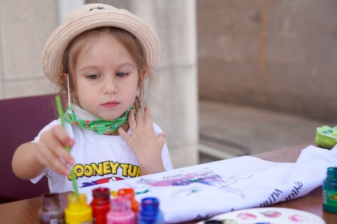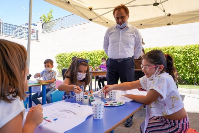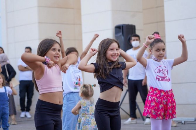 Belediye Başkanı Semih Şahin ve eşi Serpil Şahin, etkinliğe katılarak çocukların sevincini paylaştı, şeker ve rüzgar gülleri dağıttı. Boyadıkları tişörtleri giyerek hatıra fotoğrafları çektiren çocuklar daha sonra hep birlikte müzik eşliğinde zumba dansı yaptı.