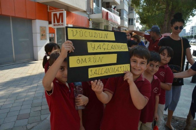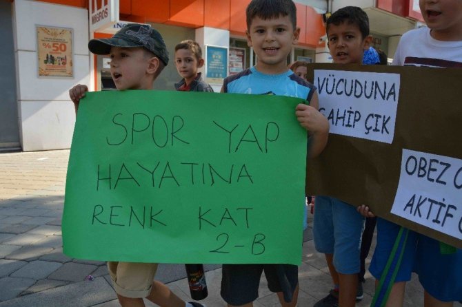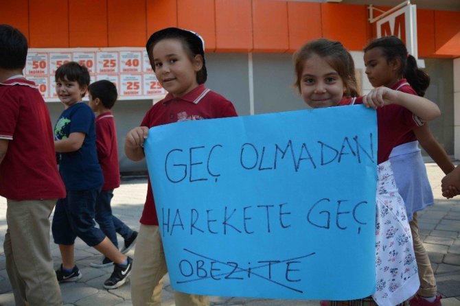 Yürüyüşe katılanlar, "Obezite ile mücadele ediyoruz", "Geç olmadan harekete geç", "Obezite her alanda hayatınızı kısıtlar", “Obezite için harekete geçin”, “Vücuduna sahip çık”, “Obez olma, aktif ol”, “Spor yap, hayatına renk kat”, “Dengeli beslenmeye evet”, “Vücudun yağlanmasın, ömrün sallanmasın” yazılı pankartlar taşıdı. Aşırı kiloların vücuda verdiği zarara değinen Atatürk İlkokulu Müdürü İbrahim Kaplan, yürüyüşle obeziteye dikkati çekmek ve insanları uyarmak istediklerini belirtti.