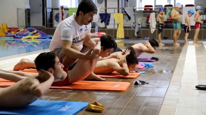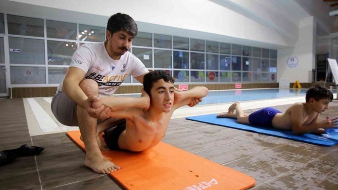 9 yaşından beri yüzme havuzunda antrenman yapan Metin Balki ise "Skolyozum var o yüzden korse takıyorum. Pandemi dolayısıyla gelemedik. O yüzden yine değerim düştü ve yüzmeye başladık. Ameliyat olacaktım ama sonra korse taktım. Yüzmeye gelince rahatlıyorum. Arkadaşlarımla gelip burada yüzüyoruz. Korse ilk başlarda rahatsız ediyordu ama sonra alıştım" dedi.