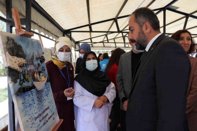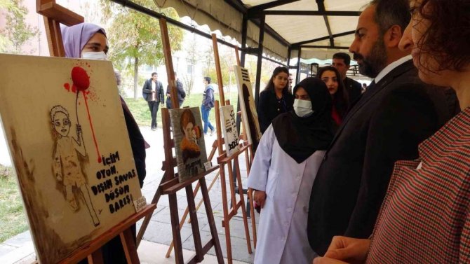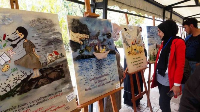 Sergide çocukların mağduriyetlerini yansıtmak istediklerini belirten öğrenciler de, "Çocuklarımızın arasına savaşlar, teller, sınırlar koymayalım. Çocukluklarını yaşasınlar doya doya" dediler.