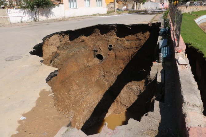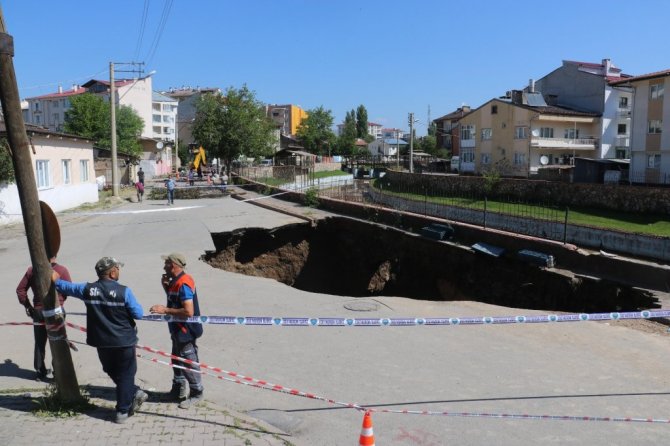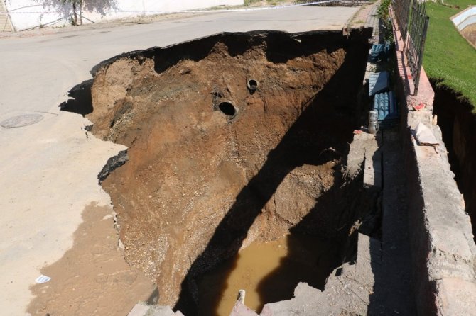 Çöken yolda oluşan çukurun boyutu gün ağırınca ortaya çıktı