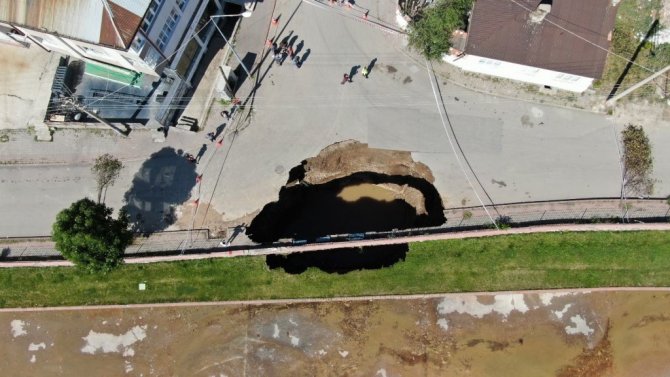 Olay dün akşam saatlerinde Dedebalı Mahallesi Dedebalı Caddesi üzerinde meydana geldi. Aksu deresi üzerinde yapılması planlanan köprü için gerçekleştirilen sondaj çalışmaları sırasında göçük meydana geldi. Yol üzerinde oluşan, 10 metre çapında 22 metre derinlikteki göçük mahallede korkuya neden oldu. Ekipler çukurun büyüme ihtimaline karşı çevrede güvenlik önlemi aldı. Göçüğü derinliği gün ağırınca ortaya çıktı. Metrelerce derinlikte göçük drone ile havdan da görüntülendi. Belediye ekipleri göçüğü kapatmak için çalışma başlattı.
