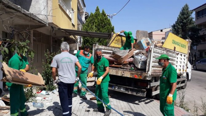Panayır Mahallesi Selvili Sokak'ta bulunan 2 katlı evden çevreye yayılan kötü koku üzerine mahalle sâkinleri Osmangazi Belediyesi'ne şikâyette bulundu. Osmangazi Belediyesi Temizlik İşleri ve Zabıta Müdürlüğü ekipleri, ihbar üzerine belirtilen adrese gitti. V.A'ya ait olan iki katlı eve giren ekipler, her iki katın da çöplerle dolu olduğunu gördü. Evin temizlenmesi için çalışma başlatan ekipler, uzun gayretler neticesinde evden 10 kamyon dolusu çöp çıkarttı. Belediye ekipleri tarafından tamamen boşaltılan ev, ilaçlanarak dezenfekte edildi.