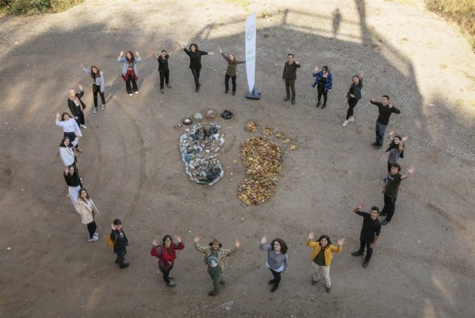 Çöplerden ayak iziyle çevre kirliliğine dikkat çektiler