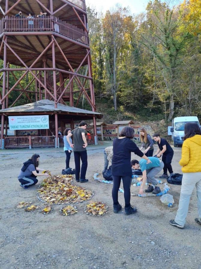 Doğa Koruma ve Milli Parklar Şubesi ile Doğaya Dönüş Derneği iş birliğinde Kırklareli'nin İğneada beldesinde bulunan Longoz ormanından topladıkları çöp ve yapraklarla oluşturdukları "ayak izi" ile çevre kirliliğine dikkat çektiler.
