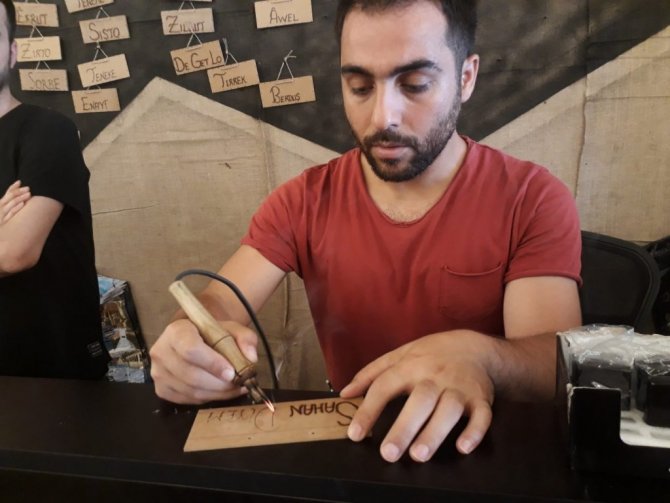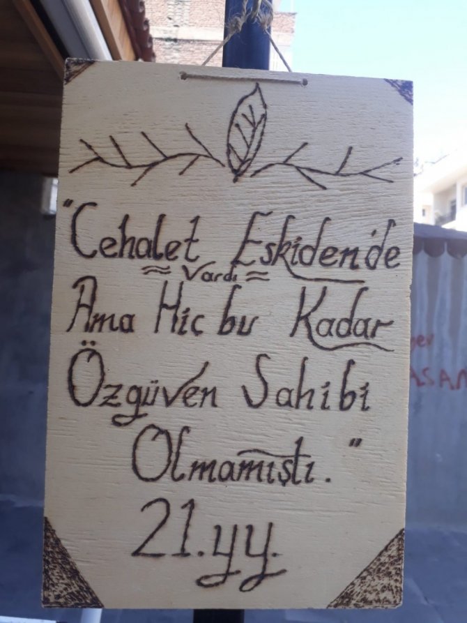 Kullanılmayan mobilya arkalıklarını kendileri alarak geri dönüşüme de katkı sağlayan Fidan, "Bu ürünleri küçük parçalar haline getirerek kesip biçerek üstüne Diyarbakır'a özgü motif ve sözler yazıyoruz. Bu da gören insanların yüzünde tebessüm oluşturuyor. Diyarbakır tarihine yolculuk yapıyorlar" diye konuştu.