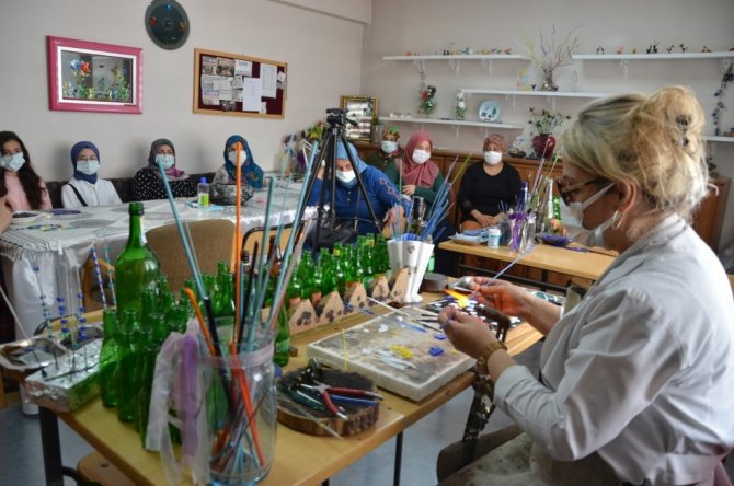 Halk Eğitim Merkezi Müdürlüğünde usta öğretici olarak görev yapan Ayşenur Öztürk tarafından verilen kurs 4 ay sürecek. Kurs sonunda eğitimlerini tamamlayan ev kadınları başarı belgelerini alarak, çöpten topladıkları camları süs eşyasına dönüştürecekler.