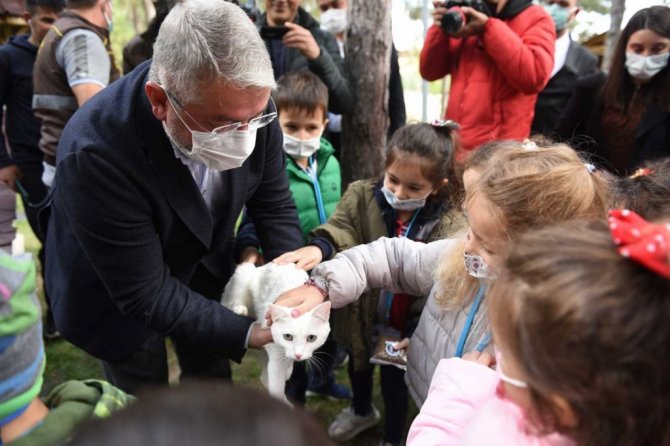 Veteriner İşleri Müdürlüğü'nde gerçekleştirilen programda Belediye Başkanı Dr. Halil İbrahim Aşgın, öğrencilerle birlikte hayvan barınağını gezerek, burada bulunan hayvanları elleriyle besledi.