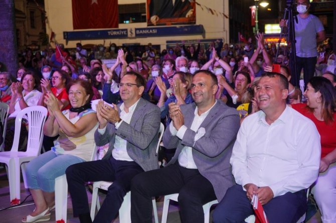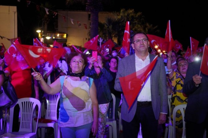 15 Eylül Ayvalık'ın düşman işgalinden kurtuluşunun 99. yıl dönümü kutlamaları kapsamında, Cumhuriyet Meydanı'nda düzenlenen konserde Murat Mermer ve orkestrasının seslendirdiği şarkılara yüzlerce Ayvalıklı da eşlik ederek adeta dev bir koro oluşturdu.