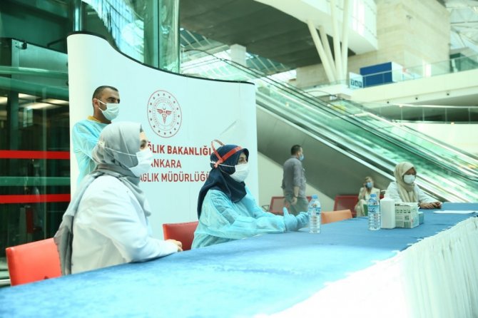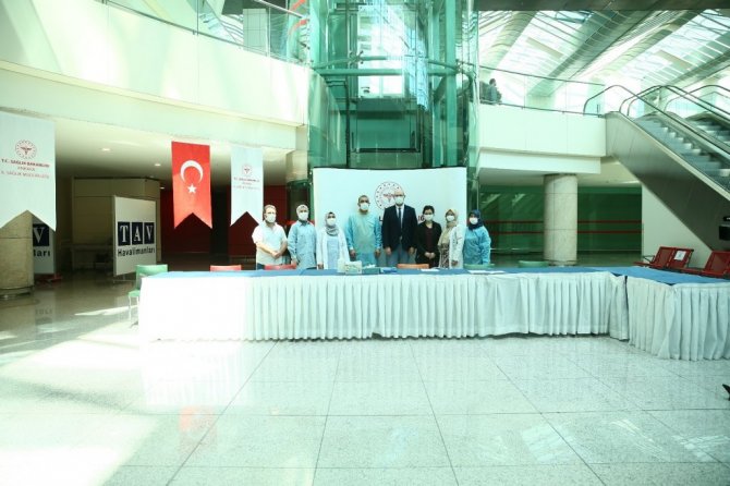 Covid-19 ile mücadele kapsamında Esenboğa Havalimanı’nda da aşılama başladı
