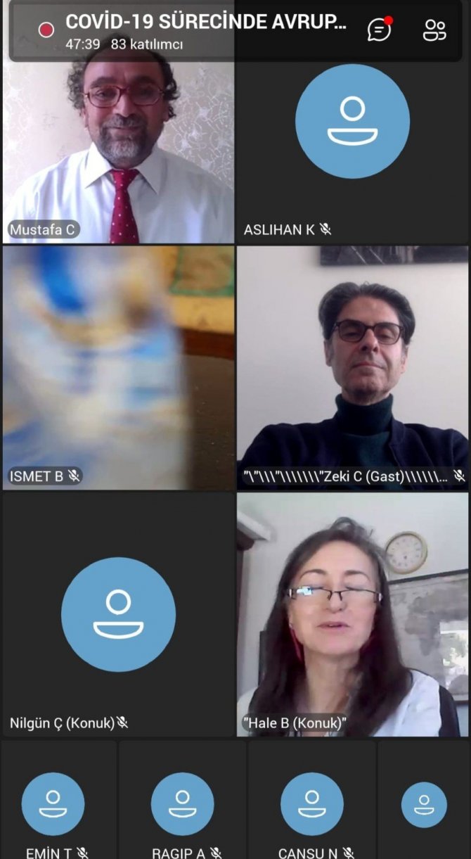 Berlin Education& Consulting Direktörü Zeki Çağlar ise "Covid-19'un Avrupa'ya Öğrettikleri: Sağlık Politikaları Perspektifleriyle" konulu sunumunda AB'nin sağlık hizmetleri konusunda yetersiz olduğunun gözlemlendiğini belirtti. Çağlar, pandemi döneminde kurumların kendi aralarında sıkıntı yaşadığını belirterek "Ülkeler arası ayrılık, rekabet ve kaos ile kurumsal bazlı sorunlar sürecin başarızlığına neden oldu" ifadesini kullandı. Avrupa sağlık sistemin salgına hazırlıksız yakalandığını söyleyen Çağlar, insanların hayatını alt üst eden pandeminin çok sayıda kayıpla ekonomik anlamda da büyük sıkıntıları beraberinde getirdiğini ifade etti. Çok sayıda izleyicinin takip ettiği çevrimiçi yapılan program soru-cevap bölümünün ardından sona erdi.