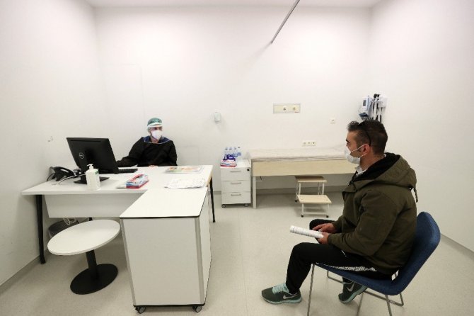 Covid şüphesi olan hastalara uygulanan işlemlerden bahseden Doç. Dr. Gülhan Kurtoğlu Çelik ise “Ön triyajda Covid düşünülen hastalar öncelikle poliklinik alanına geliyor, poliklinikte değerlendirilmeleri yapılıyor, vital bulguları bakılıyor. Tetkikler yapıldıktan sonra bu hastanın süreci uzayacaksa ve yatış planlanıyorsa gözlem alanlarına alınıyor, buradan sonra enfeksiyon hastalıkları ile birlikte konsültasyonlarımızı tamamlıyoruz. Örnek alma işlemlerimiz ise bu Covid örnek alma alanlarında en yüksek düzey koruyucu ekipmanlarla ve personelimizi korumak amacıyla negatif basınçlı ortamda bulunan özel kabinlerde gerçekleşiyor” açıklamasında bulundu.
