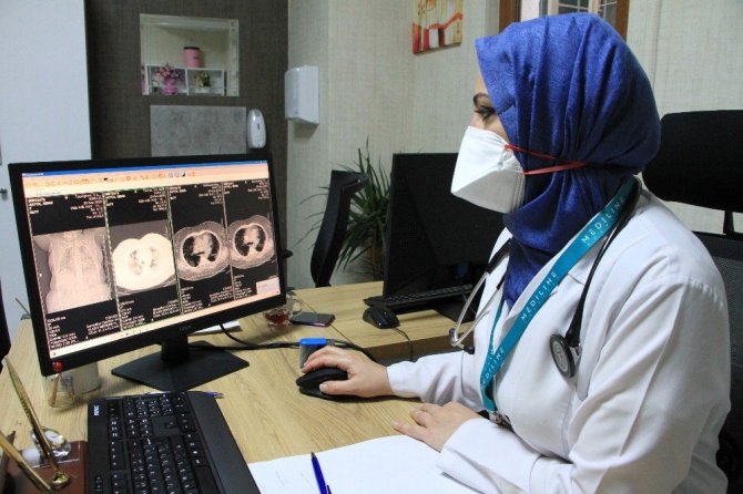 Covid-19 hastalığında fiziksel muayenenin önemli olduğuna dikkat çeken Uzm. Dr. Yalçınkaya, “Özellikle hastalar, antikor veya sürüntü (PCR) testi baktırmak istiyorum diye geliyorlar. Bizim de en çok kullandığımız, sürüntü testidir. Bu test, insan vücudundaki virüsün üretilmesine dayanarak ortaya konulan ve hastalığın ilk evrelerinde pozitif bir testtir. Bu testler bir hafta içerisinde negatife de dönebiliyor. Ayrıca iki tür antikor testimiz var, birincisi şuan bakılan immunoglobulin m, diğeri ise immunoglobulin g testidir. Onun dışında kliniğimizde yaptığımız Covid antijen testimiz var. Hastalar değerlendirilirken, fizik muayene çok önemli” şeklinde konuştu.