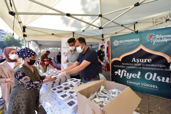 Süleymanpaşa Belediyesi Sosyal Yardım İşleri Müdürlüğü bünyesinde faaliyet gösteren Aşevi tarafından hazırlanan aşureler, Süleymanpaşa merkezde bulunan birçok camide namaz çıkışında vatandaşlara ikram edildi. Süleymanpaşa Belediyesi Sosyal Yardım İşleri Müdürlüğü ve Zabıta Müdürlüğü ekipleri, camilerin önlerinde kurulan stantlarda aşure ikramını gerçekleştirdi.