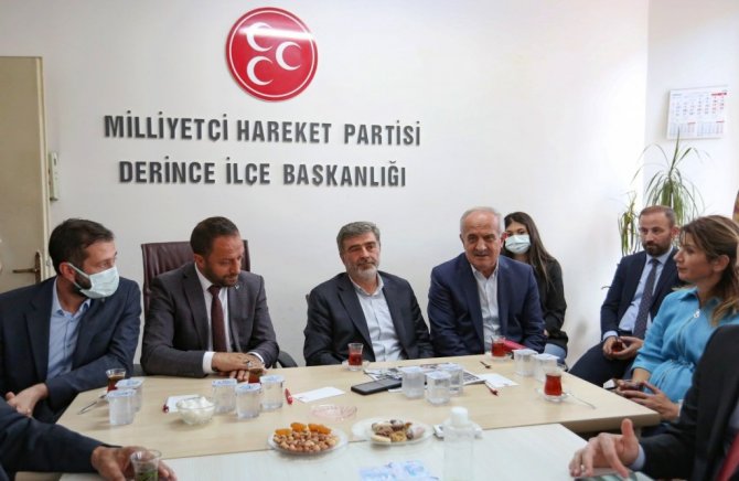 Derince'de bir dizi temasta bulunan AK Parti Kocaeli Milletvekili Sami Çakır ve Derince Belediye Başkanı Zeki Aygün, AK Parti Derince İlçe Başkanı Koray Merdan, Belediye Başkan Yardımcısı Kemal Bayraktar, belediye meclis üyeleri ve teşkilat yöneticileri ile birlikte MHP Derince İlçe Başkanlığına atanan Salim Sayar ve yönetimini ziyaret etti. Sayar ve yönetimine başarı dileklerinde bulunan Derince Belediye Başkanı Zeki Aygün, "Doğduğumuz ve büyüdüğümüz ilçemize arkadaşlarımızla beraber hizmet etmeye çalışıyoruz. Küresel yapının bölgemizde ve ülkemizde oynadığı oyunları hepimiz biliyoruz. Cumhur İttifakımız ülkemizin bekası için önemlidir. 2023 hedefiyle birlik ve beraberlik içerisinde çalışmalarımıza devam edeceğiz" dedi. Toplantıda son konuşmayı yapan AK Parti Kocaeli Milletvekili Sami Çakır ise "Öncelikle başkanımıza ve yönetimine hayırlı olsun diyorum. Bu birliktelik, ülkenin birliği, bütünlüğü ve beraberliği için el ele vermiş bir sürecin nişanesidir. Cumhur İttifakı'nın yola revan olmasının temel felsefesi, yıkmaya talip olanların önünde yapmaya devam etmesidir" diye konuştu.